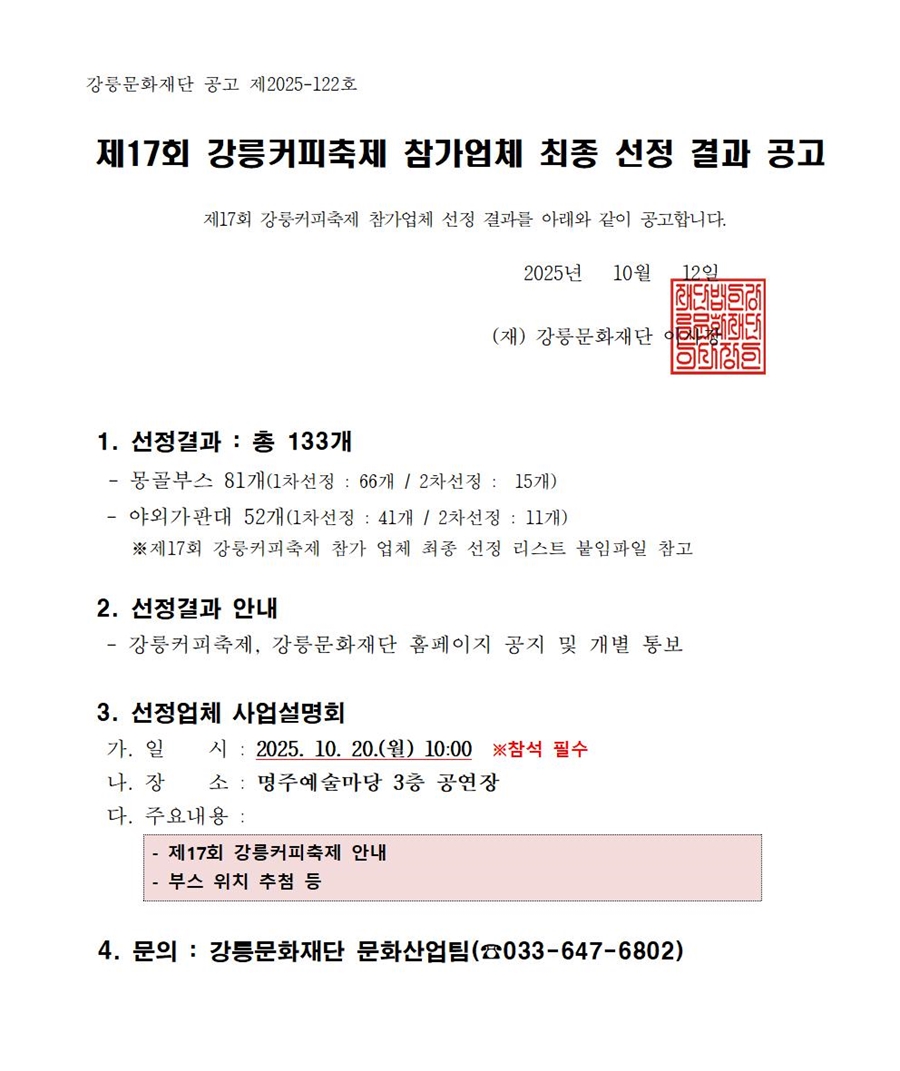 제17회 강릉커피축제 참가 업체 최종 선정 결과 공고.pdf (64 KB)