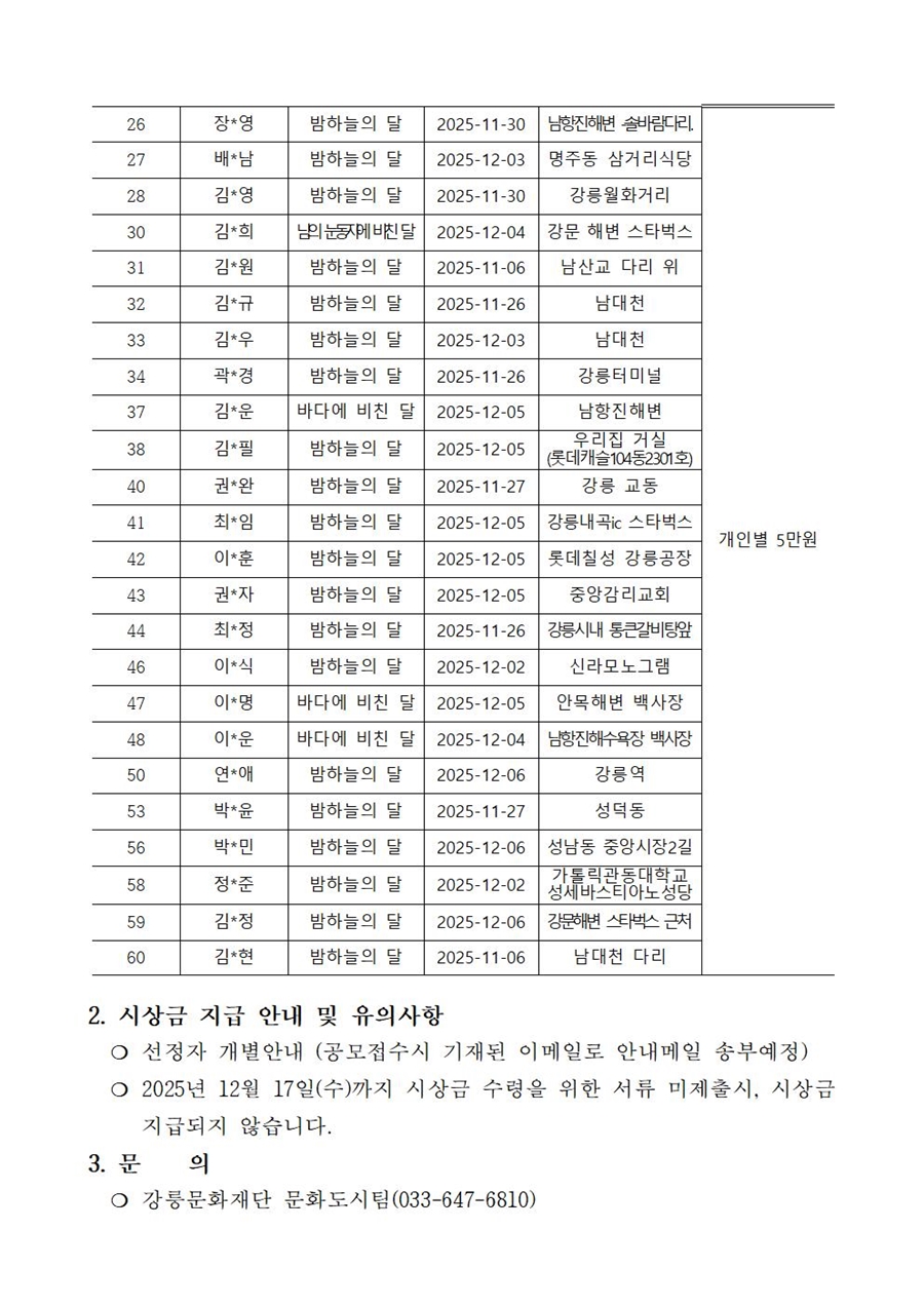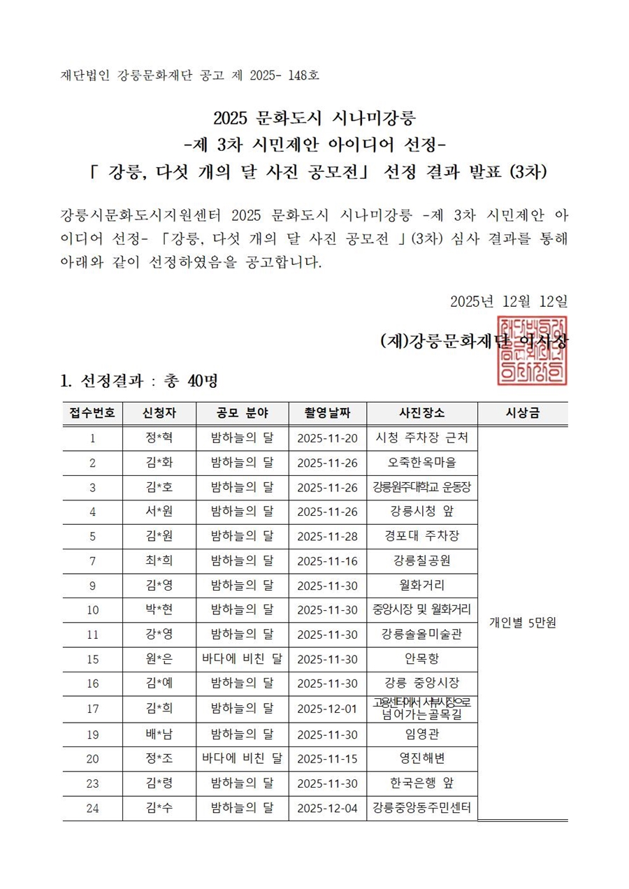 - 제3차 시민제안 아이디어 선정 -「강릉, 다섯개의 달 사진 공모전」공모 선정 결과발표(3차)