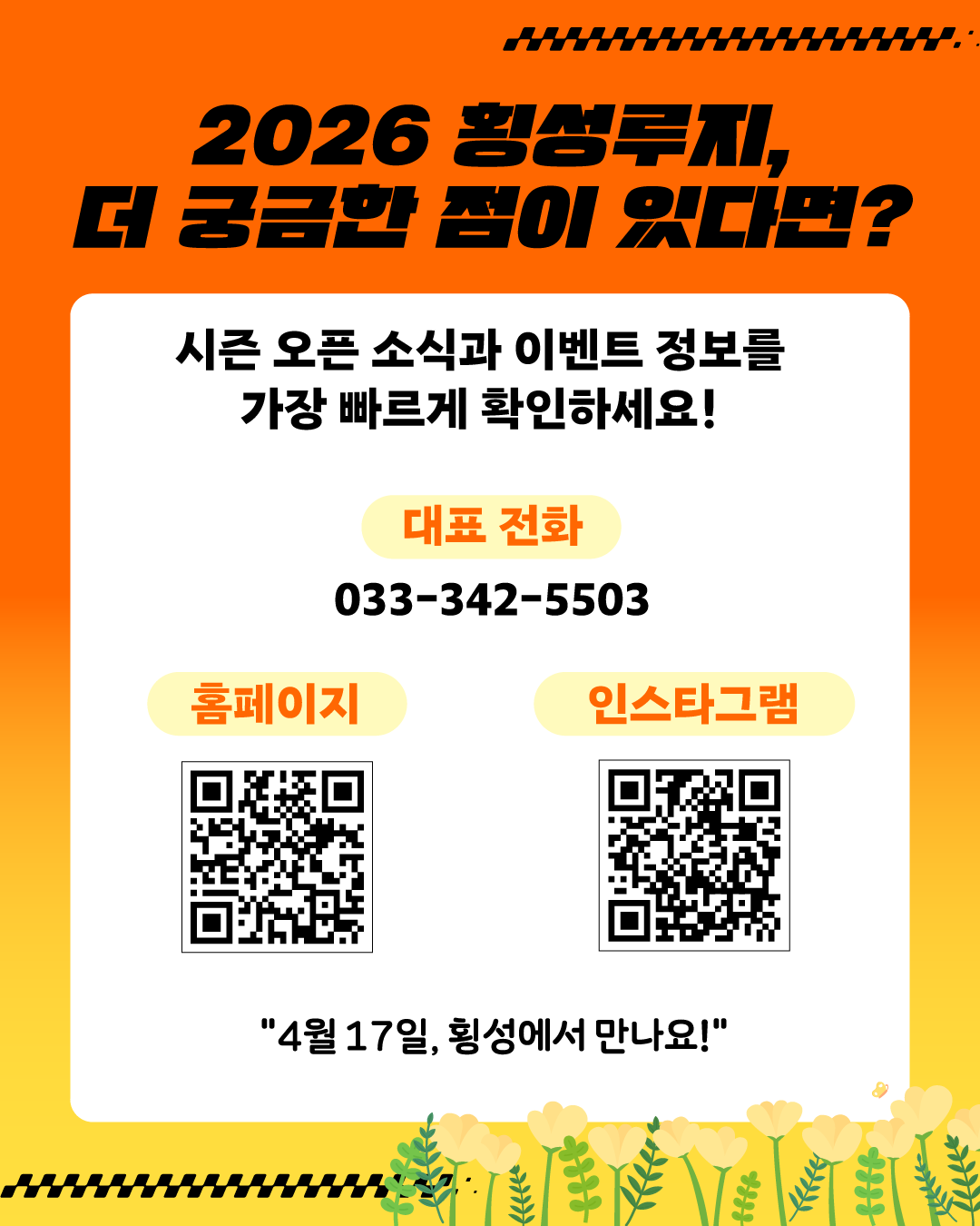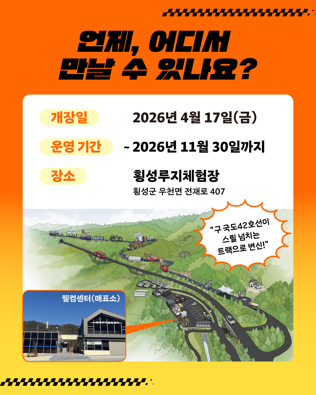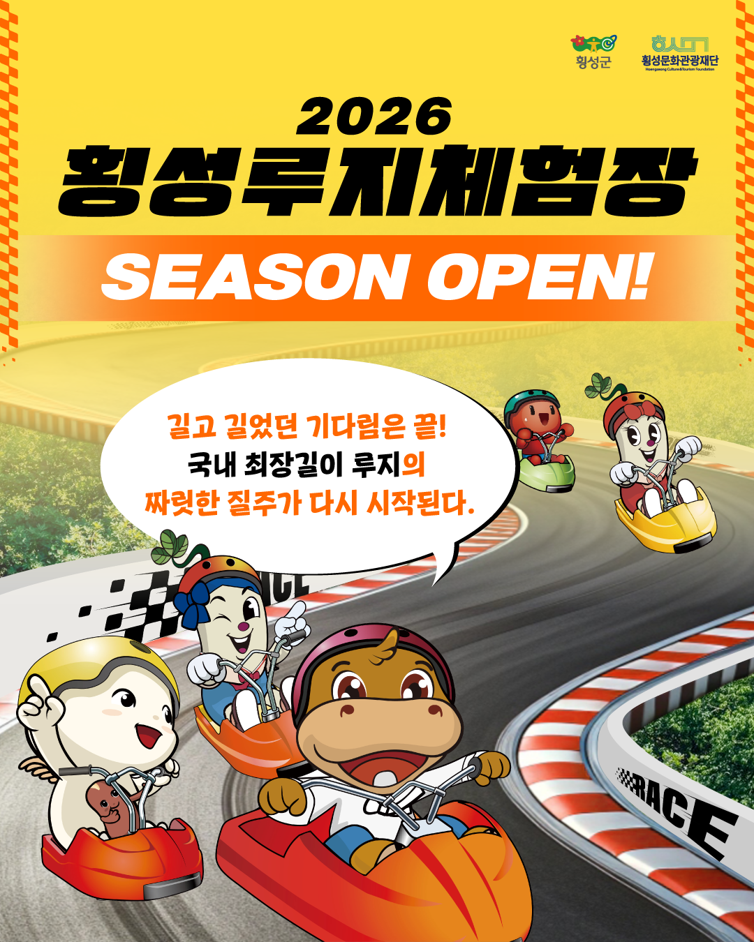 (재)횡성문화관광재단 「2026시즌 횡성루지체험장」개장 강릉문화재단 15 2026.04.20 15:44 첨부파일이 없습니다. 이전글 대전시립연정국악원 5월 가족의달 기획공연 홍보2026.04.20 15:49 다음글 (재)횡성문화관광재단 「2026시즌 횡성루지체험장」개장2026.04.20 15:44 목록으로