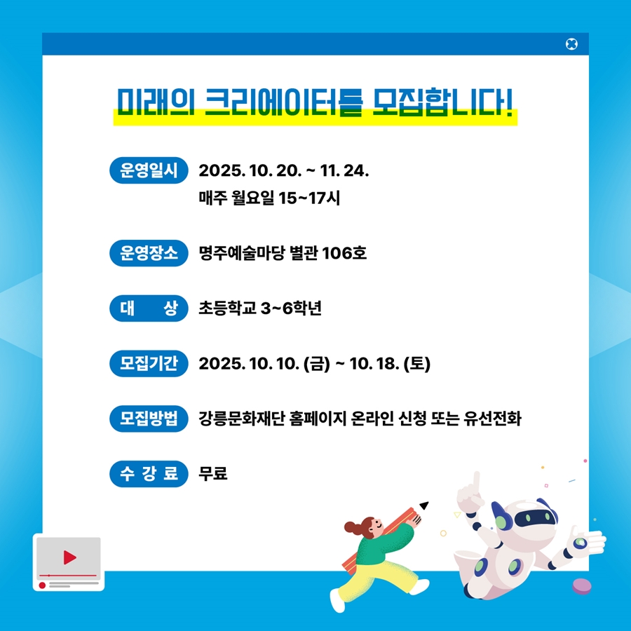 · 운영일시 : 2025. 10. 20. ~ 11. 24. 매주 월요일 15:00~17:00