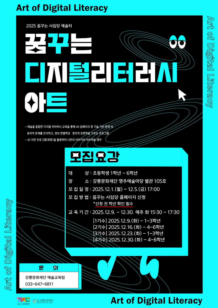 2025. 12. 9. ~ 12.30. / 매주 화요일 15:30~17:30 (2시간)● 모집대상