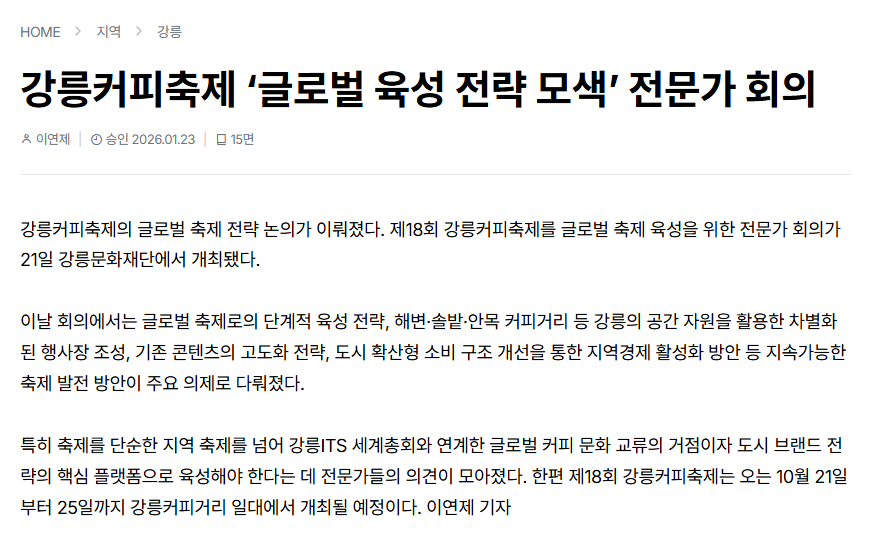 [강원도민일보] 강릉커피축제 '글로벌 육성 전략 모색' 전문가 회의